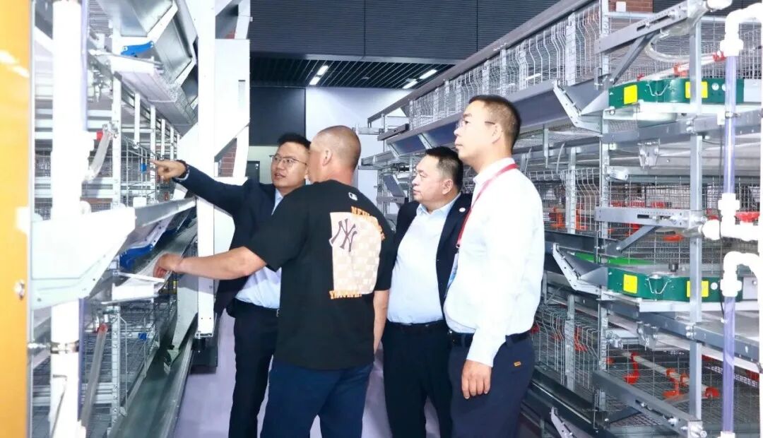 作为本届展会核心参展商,新增鑫以315㎡创新展台构筑智能畜牧全景体验空间。在董事长曾年根、总经理林元东率领下,企业全新研发团队与六大智能装备矩阵联袂登场,层叠式蛋鸡笼、56寸蝴蝶门风机、28寸高负压风机、液态料饲喂系统、第三代精准饲喂器、智能干湿料槽、“6+1”智能养殖模式等前沿产品甫一亮相便引发行业震动。